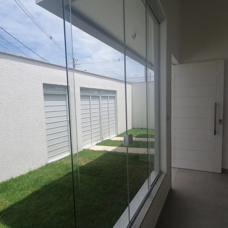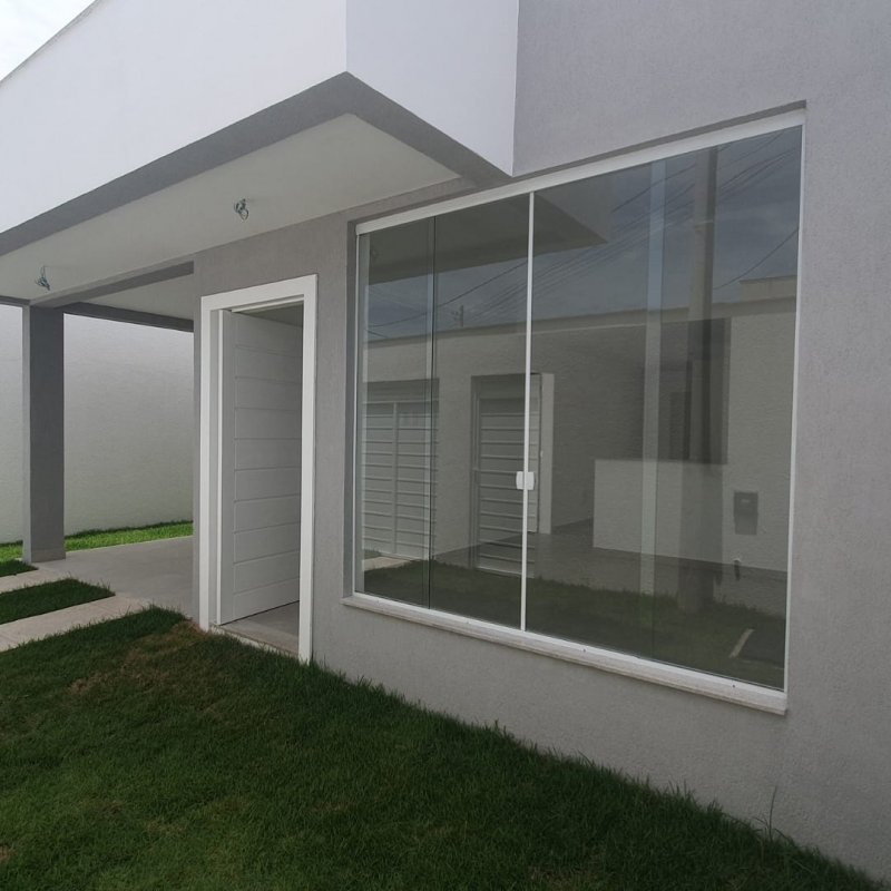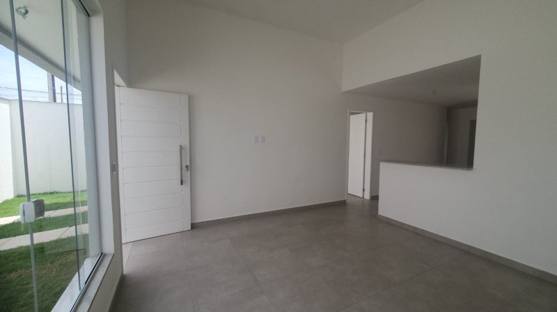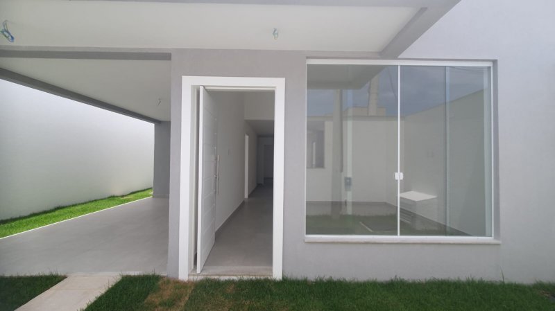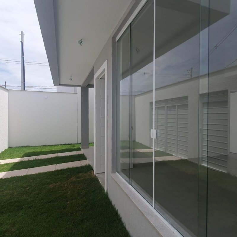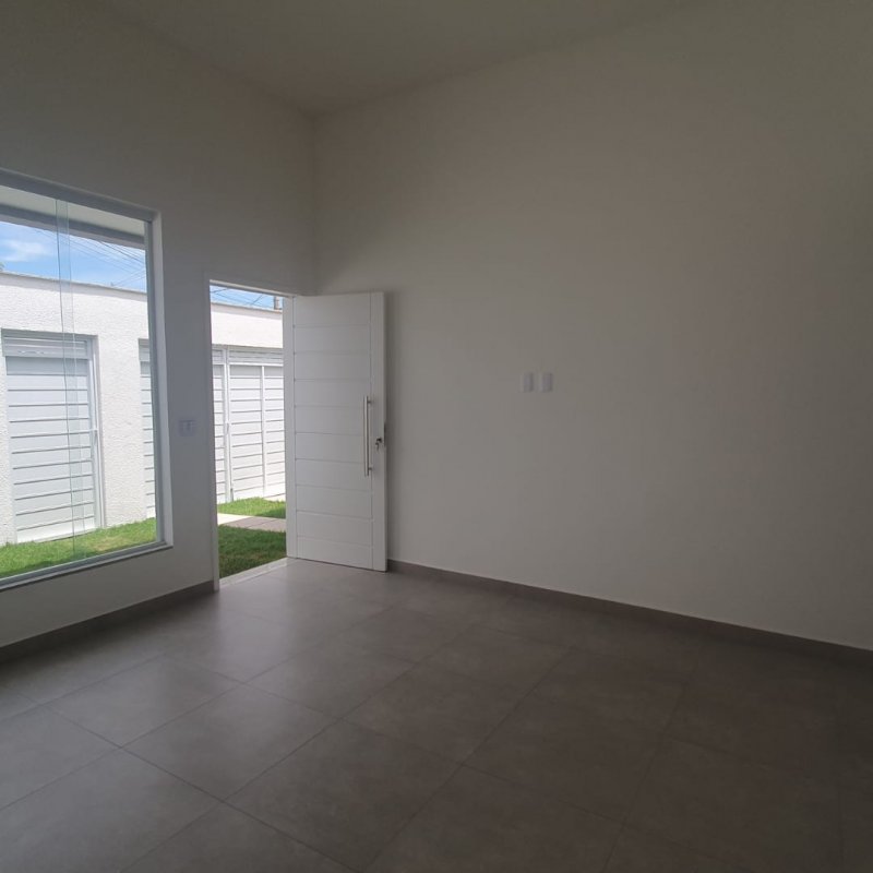Casa linear 100m2 com 3 quartos, sendo 1 suíte, sala, cozinha integrada, área de serviço, garagem coberta, quintal,
