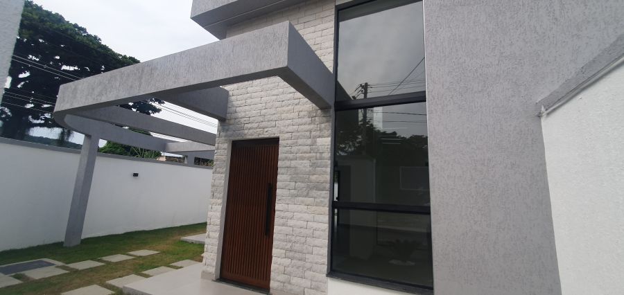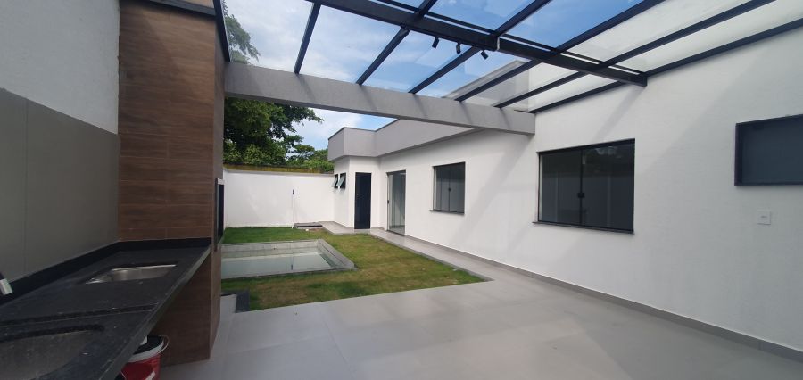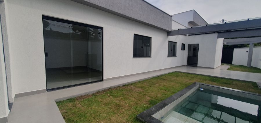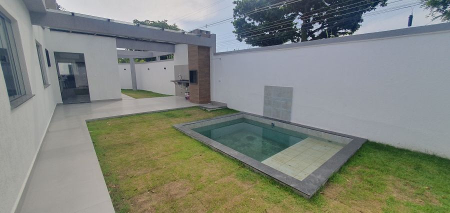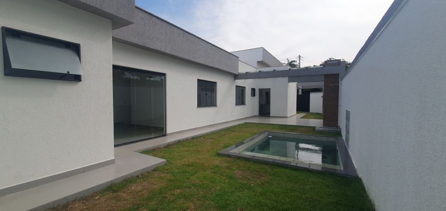 Casa 3 quartos sendo uma suíte com closet, sala ampla com pé direito alto, cozinha espaçosa com bancada em formato de U, fachada com iluminação em led, espaço gourmet coberto, luminárias, com churrasqueira bancada, 2 banheiros, 1 lavabo externo, chuveirão, piscina com cascata, garagem, quintal amplo, fino acabamento, aceitando financiamento bancário, valor 599mil, agende sua visita 21 96460-9189.