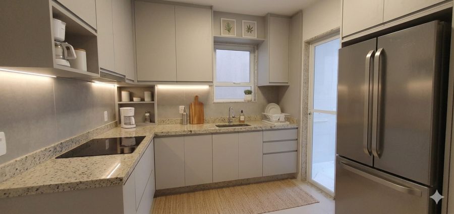 * Cozinha em conceito americano, ideal para otimização de espaço;